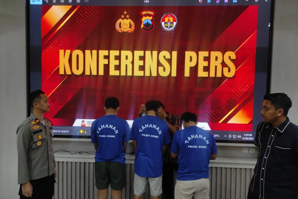 “Untuk perkara pengeroyokan yang mengakibatkan korban meninggal dunia, tadi malam Satreskrim Polres Demak kembali mengamankan tiga orang. Dua di antaranya merupakan anak yang berhadapan dengan hukum,” ujar Ari dalam konferensi pers di Mapolres Demak, Selasa (30/12/2025).